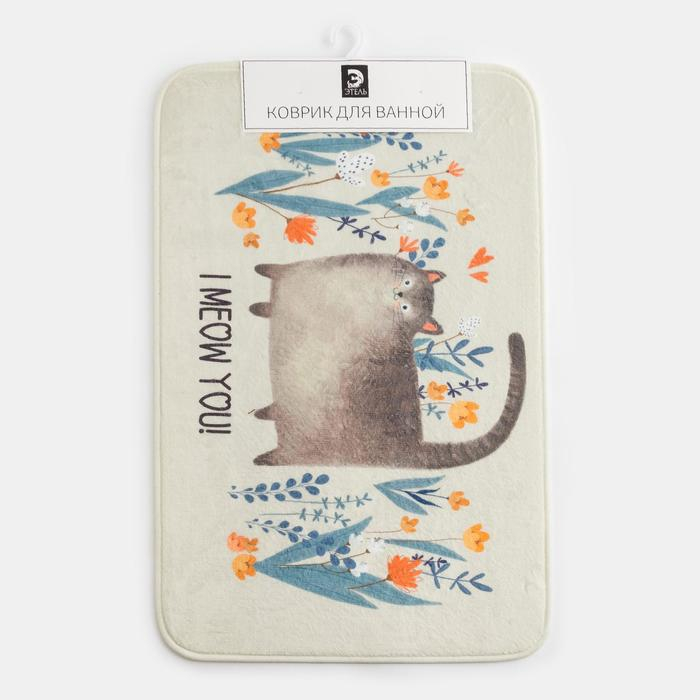 Коврик для ванной Этель "I meow you", 80х50 см, велюр