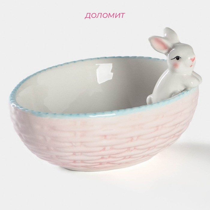 Салатник Доляна «Зайка», 350 мл, 18×14×11 см, голубой ободок