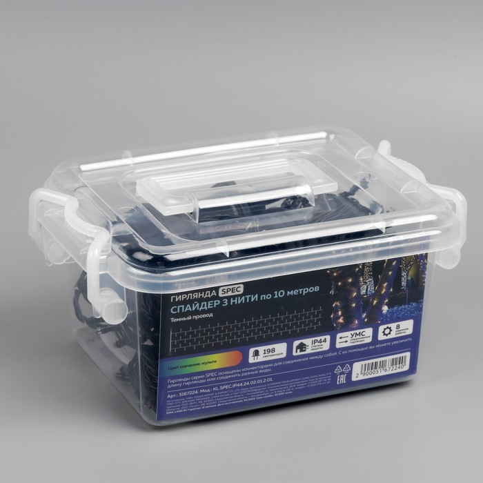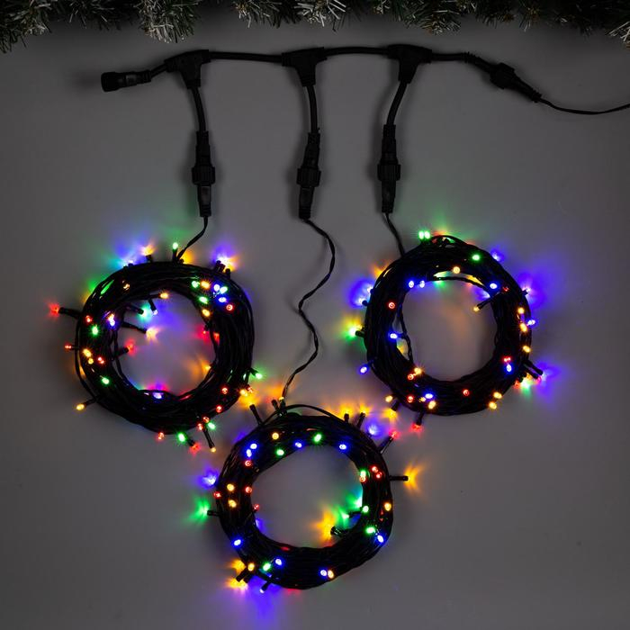 Гирлянда «Клип-лайт» 3 нити по 10 м, IP44, УМС, тёмная нить, 198 LED, свечение мульти, 8 режимов, 24 В