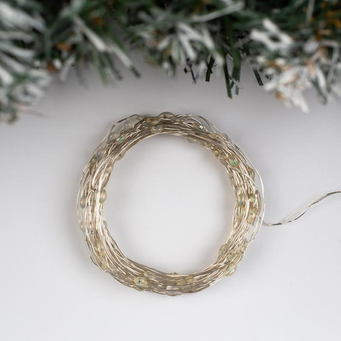 Гирлянда «Нить» 5 м роса, IP20, серебристая нить, 100 LED, 2 режима, батарейки AAх3 (нет в комплекте), свечение мульти (RGB)