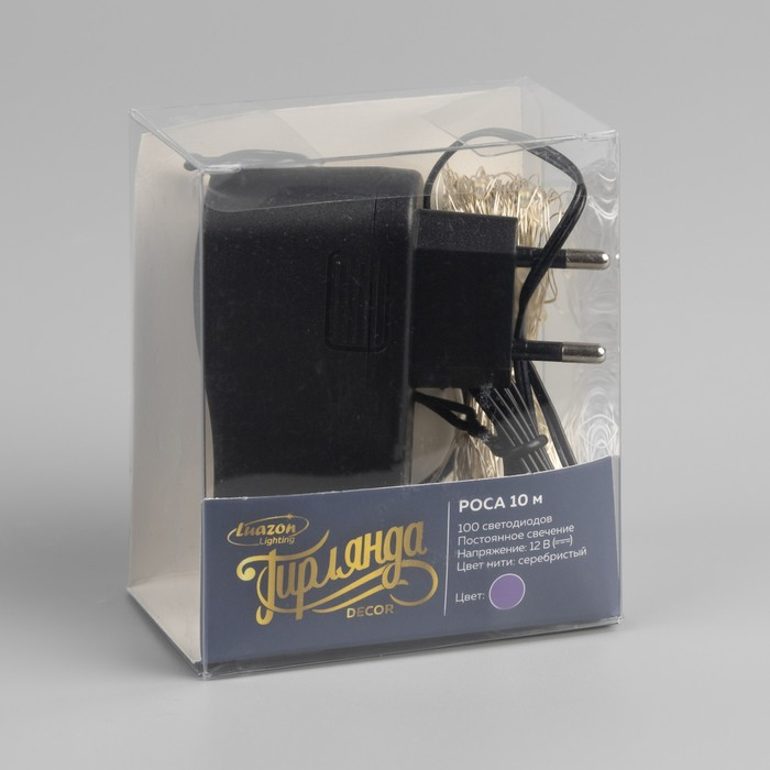 Гирлянда «Нить» 10 м роса, IP20, серебристая нить, 100 LED, свечение фиолетовое, 12 В