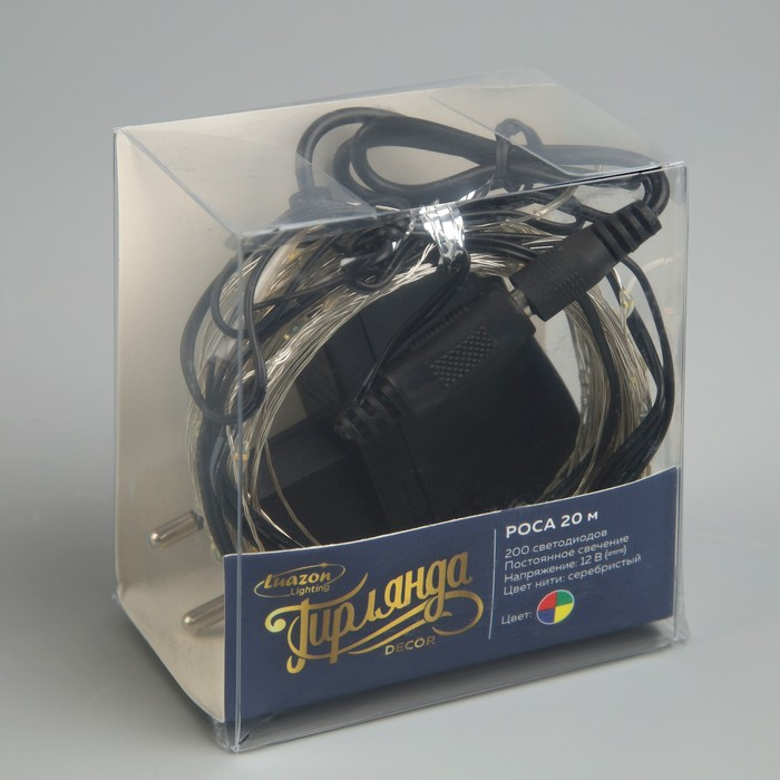 Гирлянда «Нить» 20 м роса, IP20, серебристая нить, 200 LED, свечение мульти, 12 В