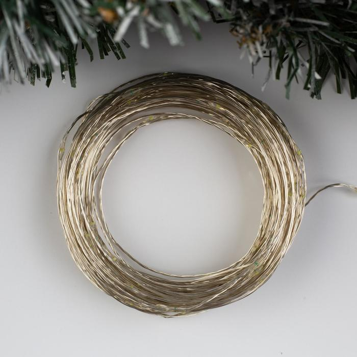 Гирлянда «Нить» 10 м роса, IP20, медная нить, 100 LED, свечение тёплое белое, 12 В