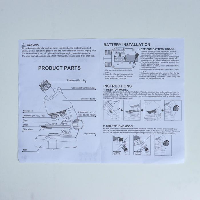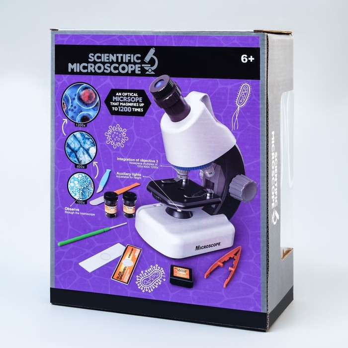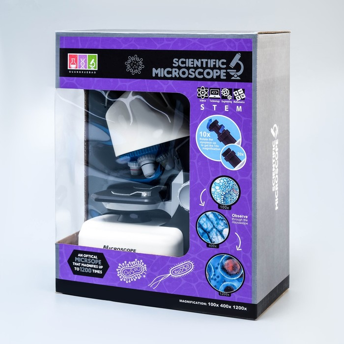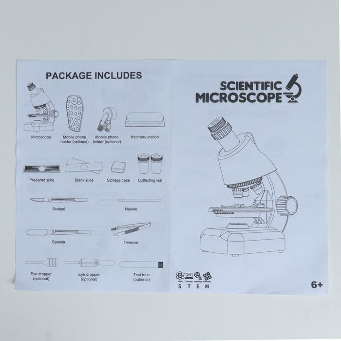 Микроскоп "Юный биолог" кратность до х1200, белый, подсветка