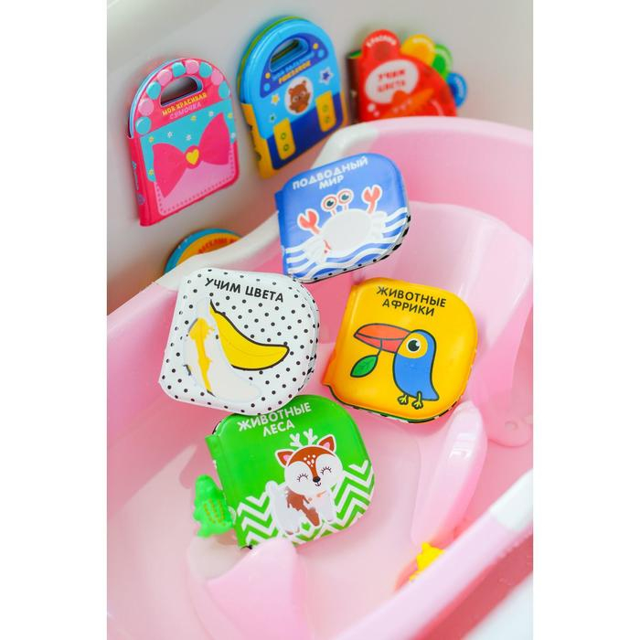 Яркая развивающая книжка поможет развлечь малыша в ванной и сделать процесс купания весёлым. Книжка не испортится от контакта с водой и будет радовать кроху. Изготовлена из безопасных материалов.