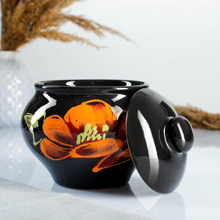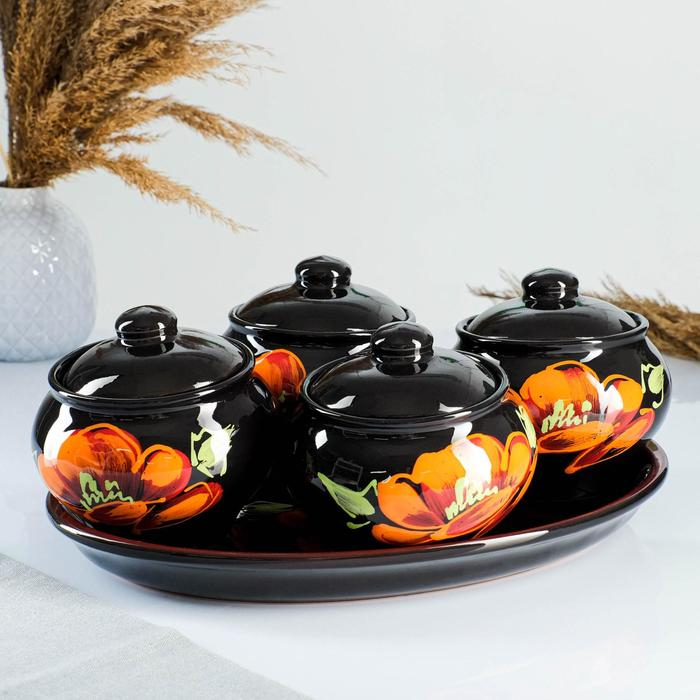 Набор горшков "Подарочный" 4х0,5л / 34,5х24,5см, мак на черном