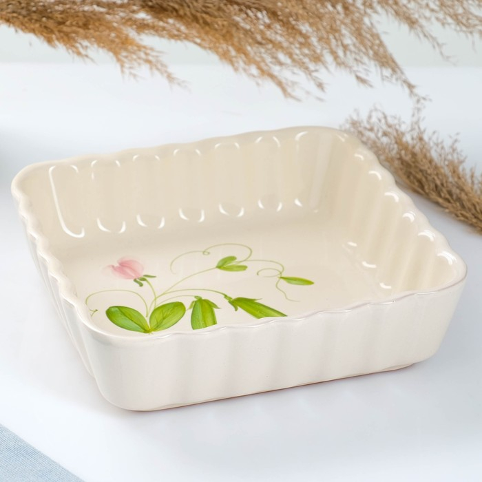 Емкость для запекания "Волна квадратная" 1,5л / 6,5х23х23см, горошек