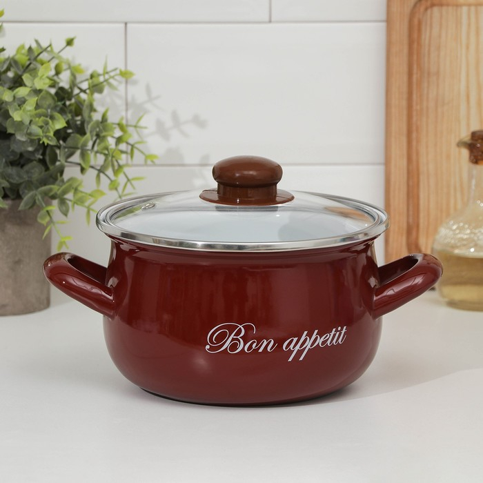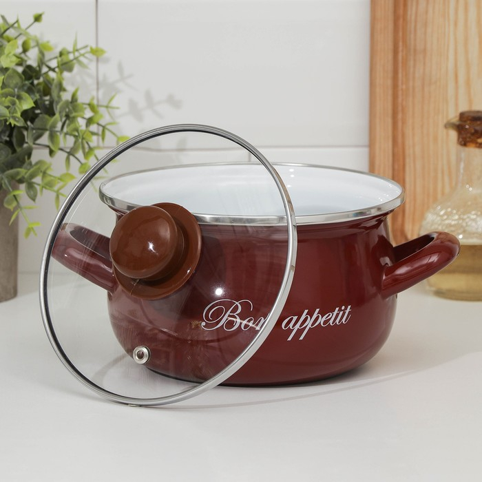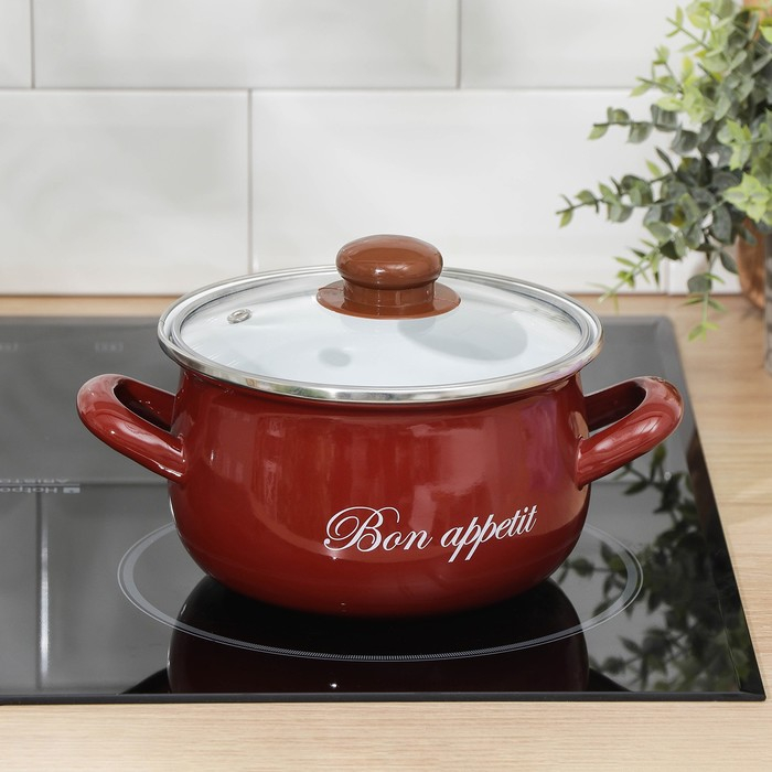Кастрюля эмалированная «Бордо», 2,1 л, индукция, цвет бордовый