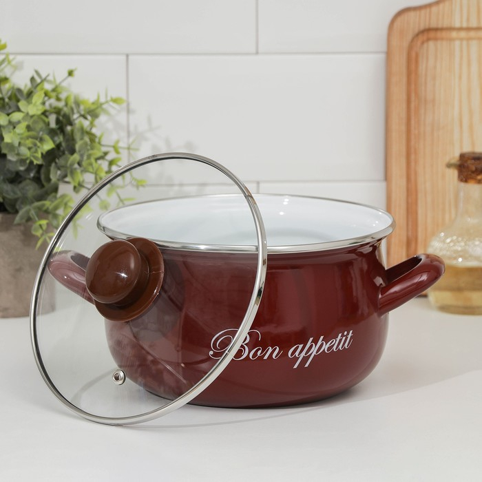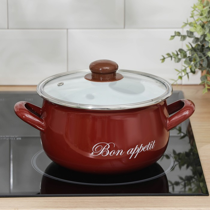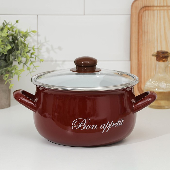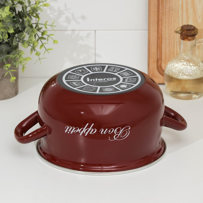 Кастрюля эмалированная «Бордо», 3,1 л, индукция, цвет бордовый