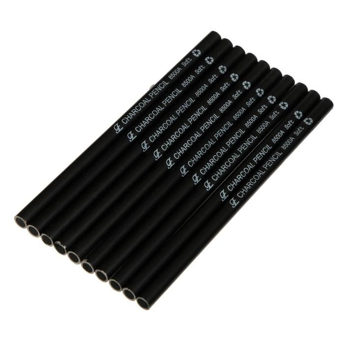 Карандаши угольные чёрные 10 штук в наборе Soft