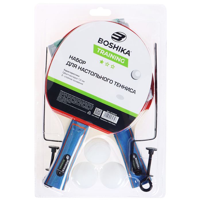 Набор для настольного тенниса BOSHIKA Training: 2 ракетки, 3 мяча, сетка, крепление