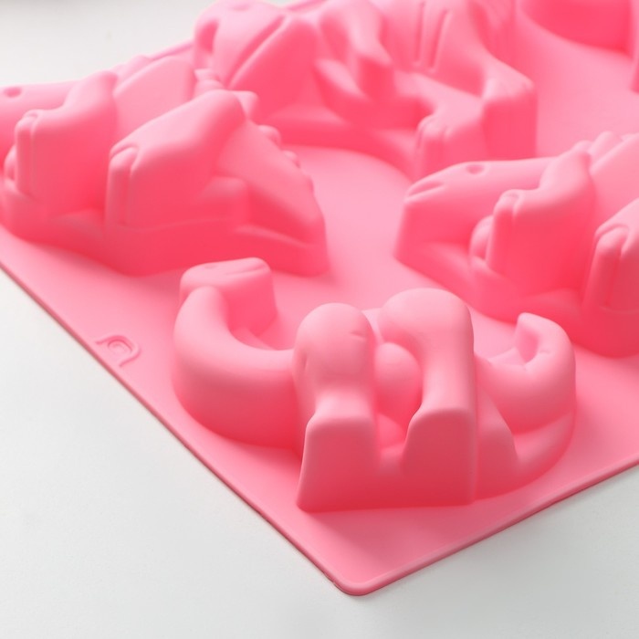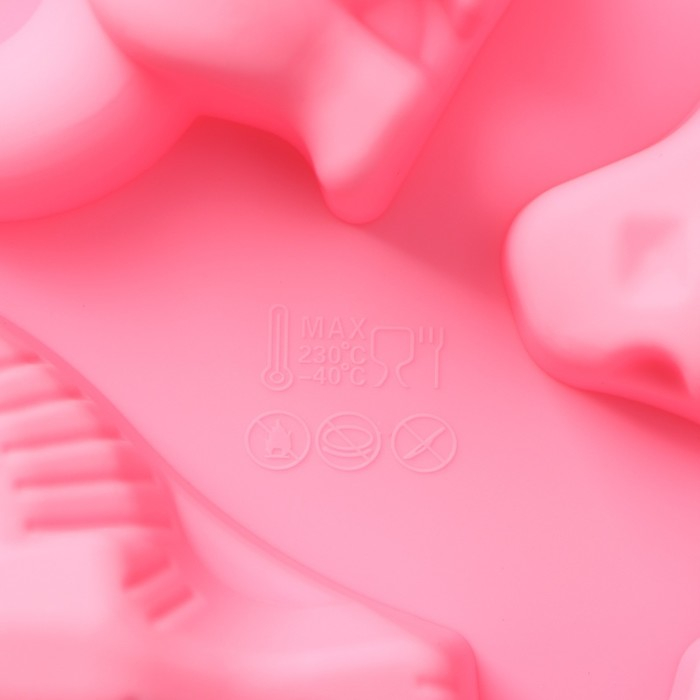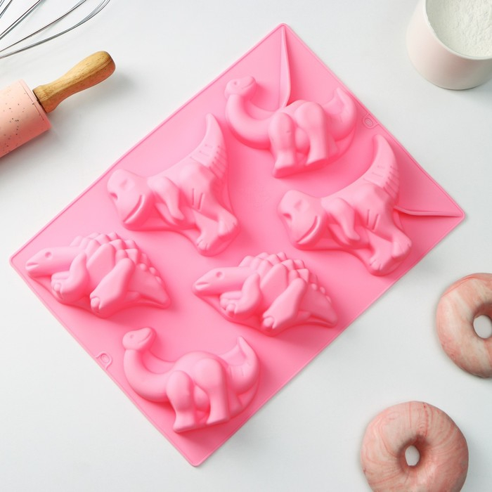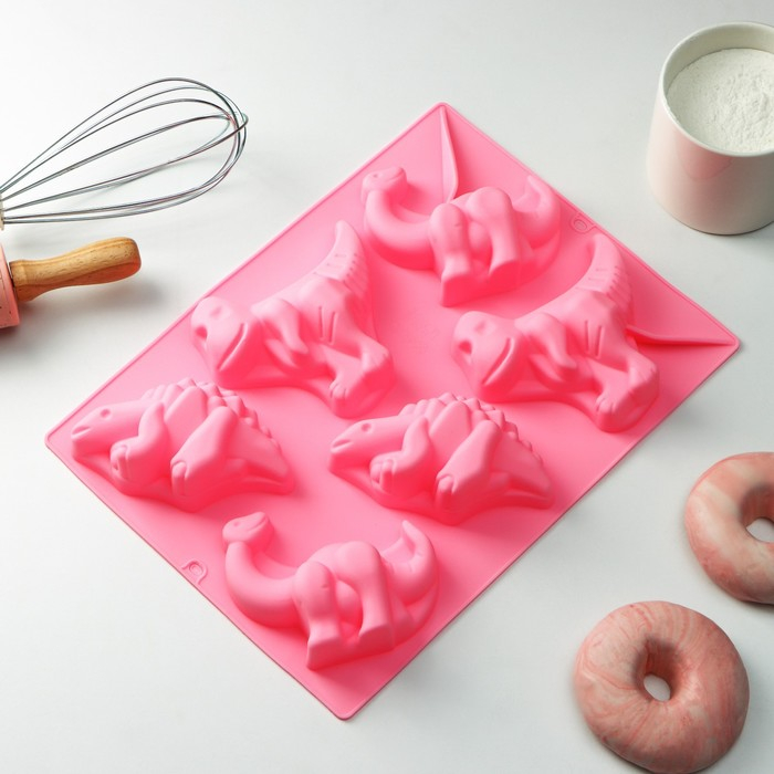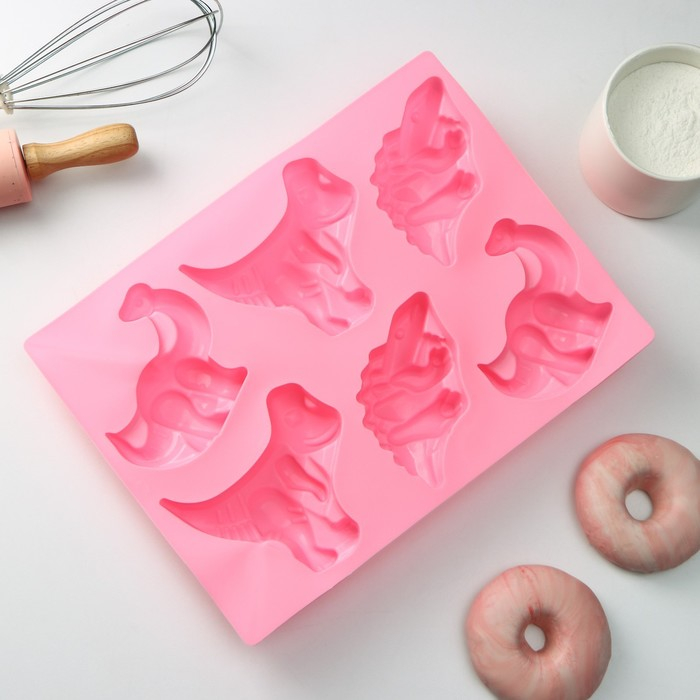 Форма для выпечки Доляна «Животные.Динозавры», силикон, 29×21 см, 6 ячеек (10,4×7,2 см), цвет розовый