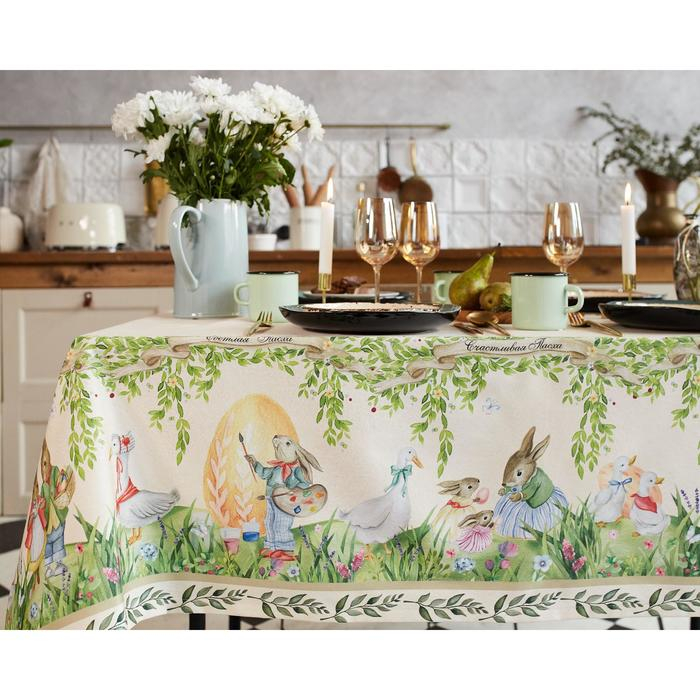 Скатерть "Этель" Акварельные зайцы 110х147 см, 100% хл, саржа 190 гр/м2