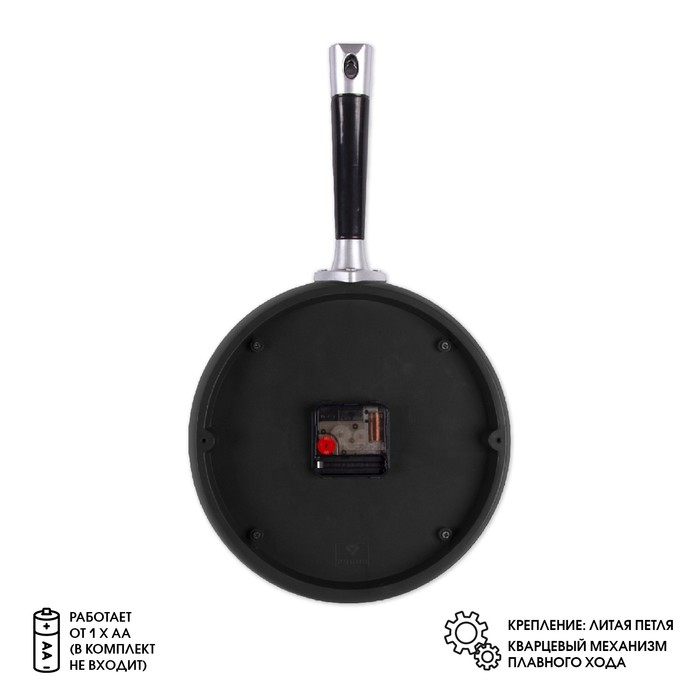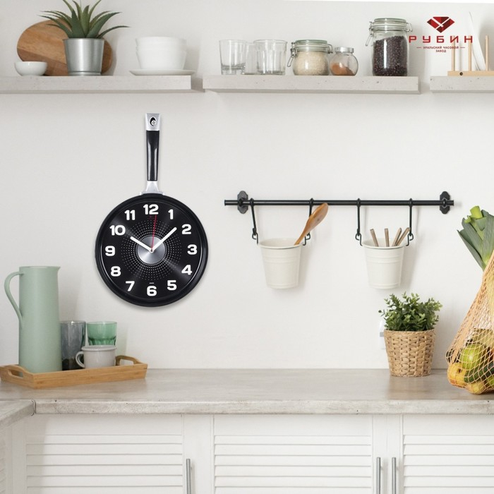Часы настенные интерьерные для кухни "Сковорода", бесшумные, 25 х 43 см, чёрные, АА