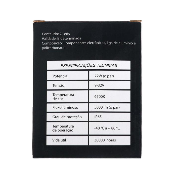 Автолампа светодиодная Н11, 72 Вт, 5000 Лм, 6500 К, IP65, набор 2 шт