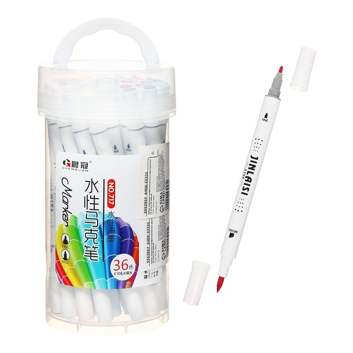 Набор маркеров, 36 цветов, кистеобразный наконечник, в пластиковой коробке