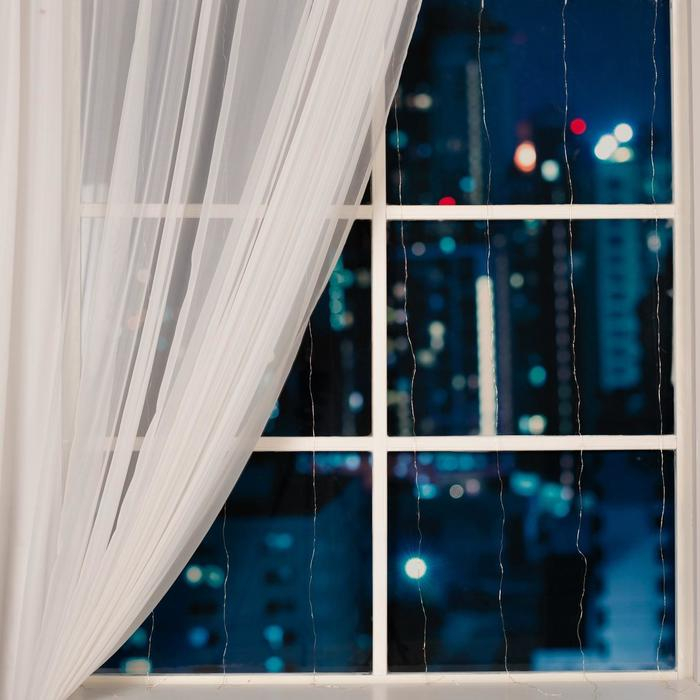 Гирлянда «Занавес» 2.5 × 0.65 м с насадками «Капли», IP20, прозрачная нить, 50 LED, свечение тёплое белое, 8 режимов, 220 В