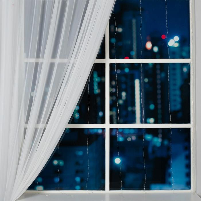 Гирлянда «Занавес» 2.5 × 0.65 м с насадками «Капли», IP20, прозрачная нить, 50 LED, свечение тёплое белое, 8 режимов, 220 В