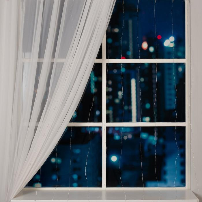 Гирлянда «Занавес» 2.5 × 0.65 м с насадками «Капли», IP20, прозрачная нить, 50 LED, свечение тёплое белое, 8 режимов, 220 В