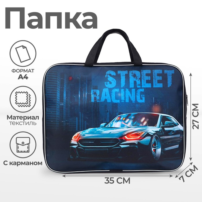Папка с ручками текстильная А4, 350 х 270 х 70 мм, Calligrata "Тачка"