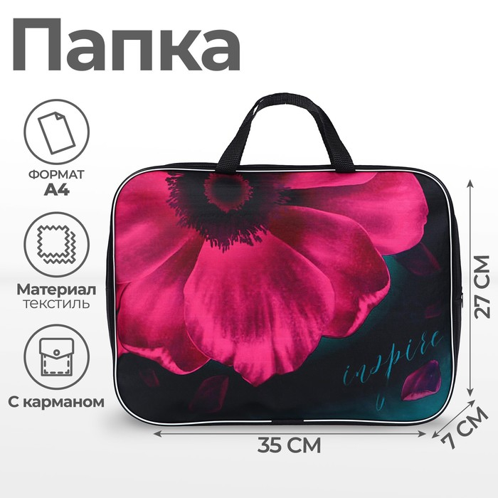 Папка с ручками текстильная А4, 350 х 270 х 70 мм, Calligrata "Цветок"