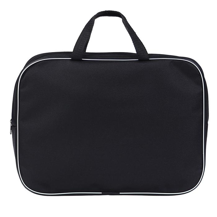 Папка текстильная на молнии с ручками, формат A4+. Размер 270 х 70 х 350 мм. Материал: износо-морозостойкий водоотталкивающий 100% полиэстер. Предназначена для транспортировки учебных принадлежностей, документов и различных аксессуаров. Имеет одно большое отделение с расширением и карманом внутри, застежка на молнии с мягким ходом. Для комфортной переноски ручки папки выполнены из прочной стропы