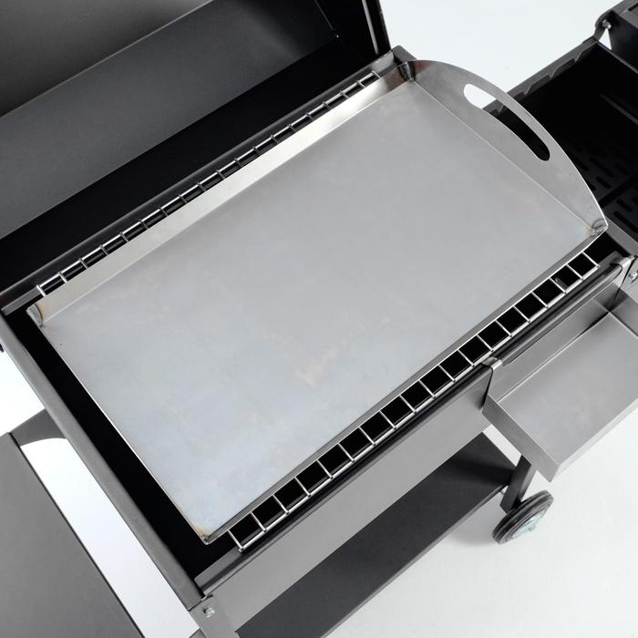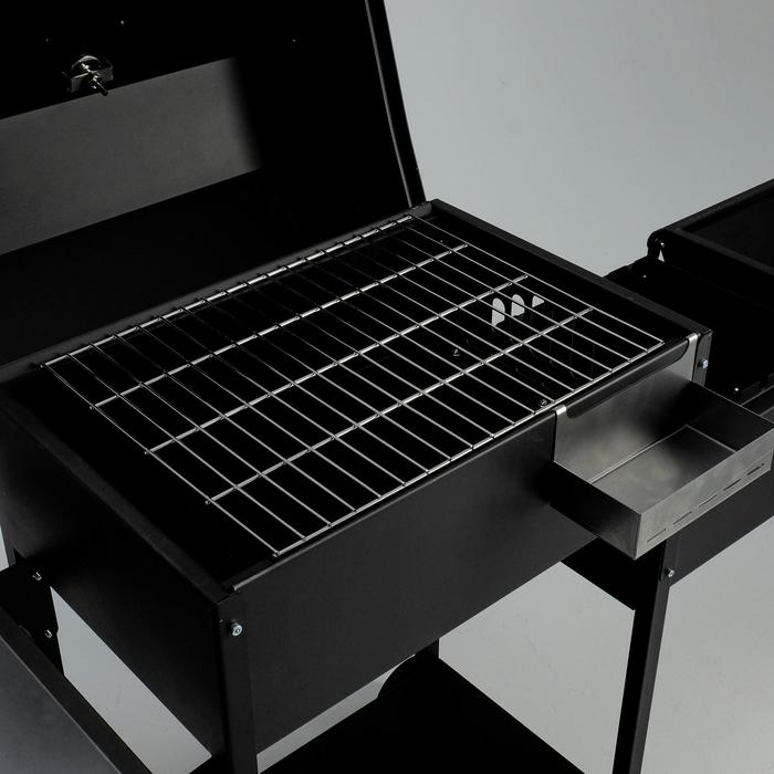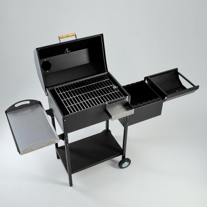 С колёсами, С коптильней, С крышкой, С подносом, С полкой/столиком, С решёткой