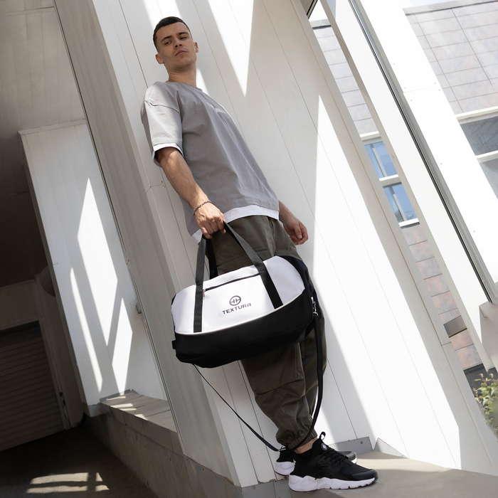 Сумка спортивная, TEXTURA, средний размер, цвет чёрный/белый