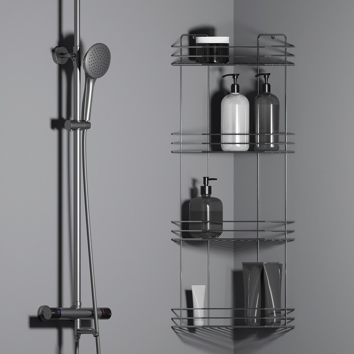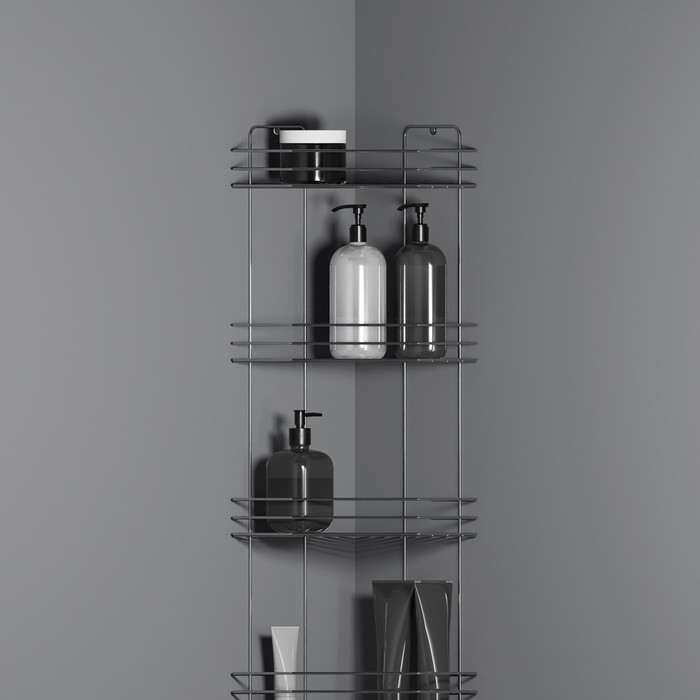 Полка угловая для ванной 4-х ярусная Native, 175×175×762 мм, цвет черный матовый