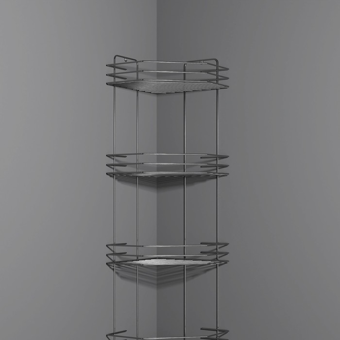 Полка для ванной угловая 4-х ярусная, 20,5×20,5×72 см, цвет хром