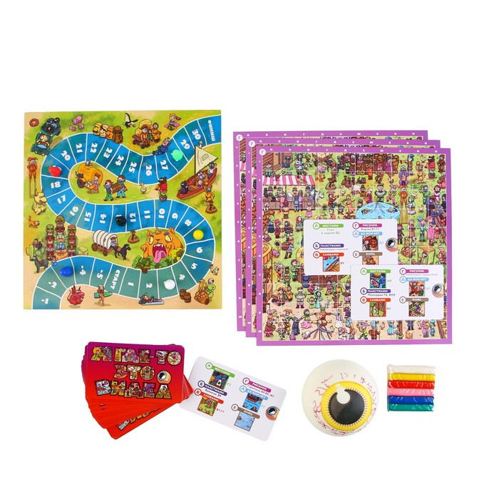 Для начала выберите поле с иллюстрациями, которое будете использовать сегодня. Для удобства каждое поле отмечено буквами от А до Е. Тщательно перемешайте карточки и сложите их в одну колоду рубашкой вверх рядом с полем для передвижения. Туда же поместите пластилин.