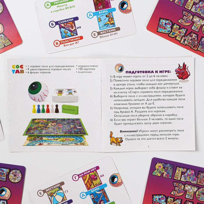 Внутри этой игры вас ждёт шесть картин, на которых художники спрятали самые разные слова. Их вам и предстоит объяснить. Здесь нужно не просто отгадывать, а ещё искать на поле и хватать игрушку-сквиш. Чего же вы ждёте? Скорее собирайте друзей, раздавайте поля, объясняйте слова разными способами, ищите их на картинках и побеждайте!
