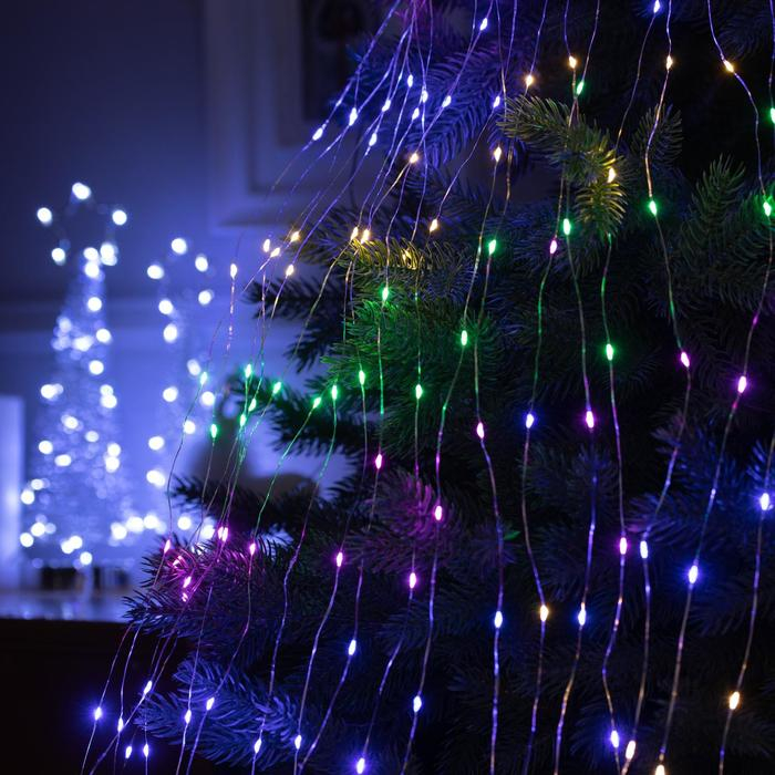 Гирлянда «Конский хвост» 20 нитей по 2 м, IP20, серебристая нить, 400 LED, свечение мульти, 12 В