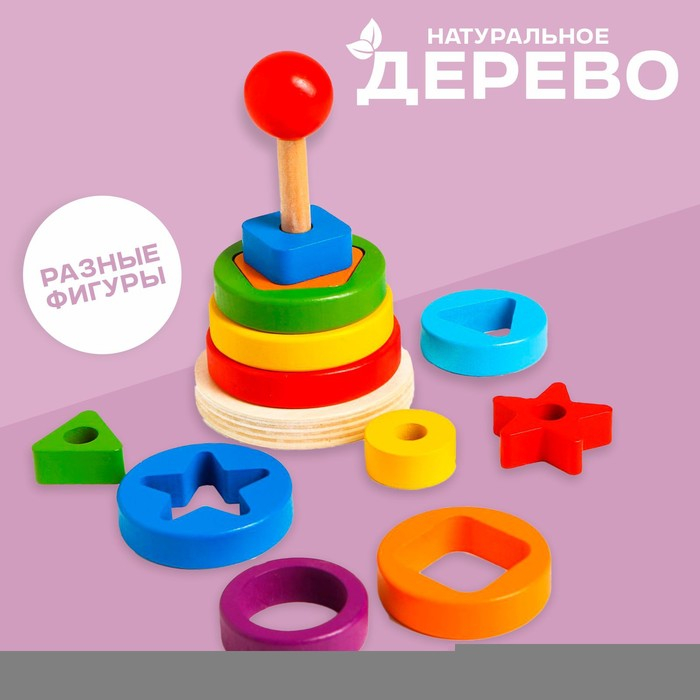 Детская развивающая пирамидка «Разные фигуры» 9,5×9,5×15,5 см