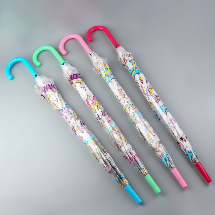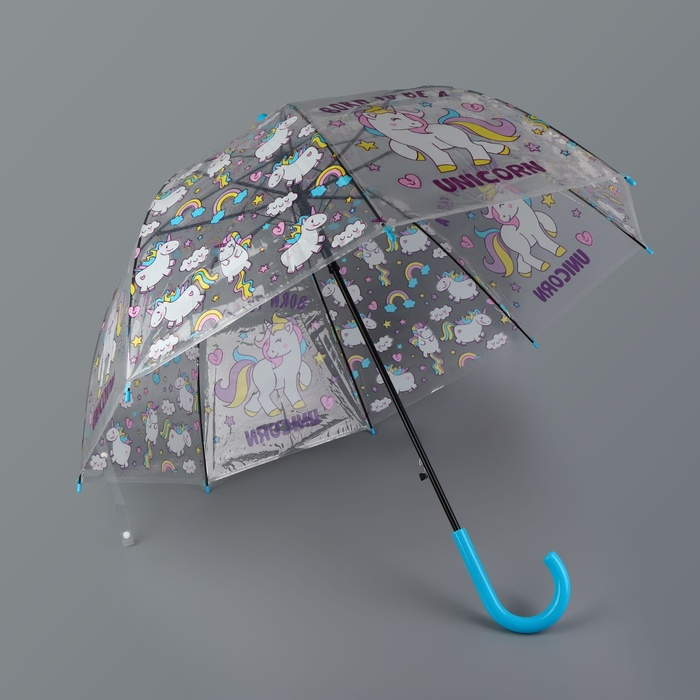 Зонт - трость полуавтоматический «Единороги», 8 спиц, R = 43/60 см, D = 120 см, цвет МИКС