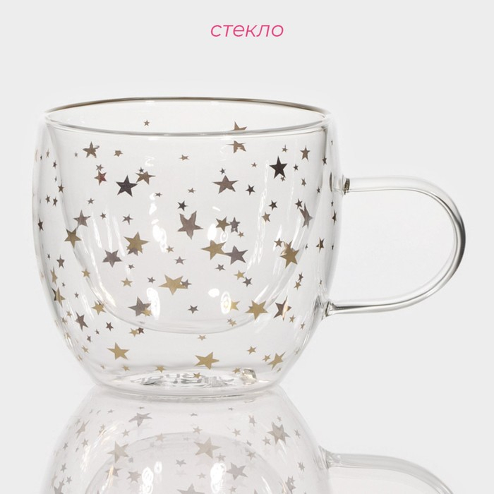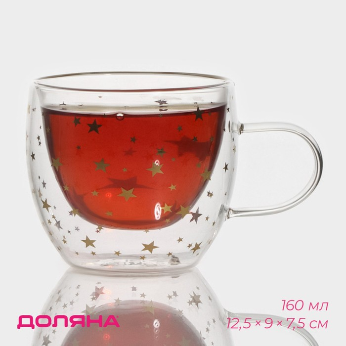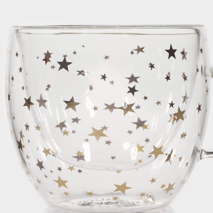 Кружка стеклянная с двойными стенками Доляна «Дуо. Звёзды», 160 мл, 12,5×9×7,5 см