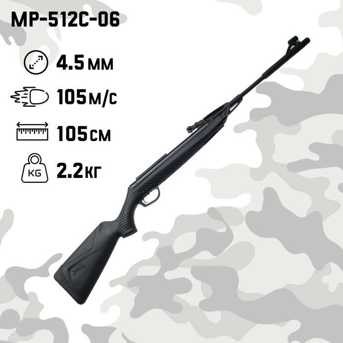 Винтовка пневматическая "МР-512С-06" кал. 4.5 мм, 3 Дж, ложе - пластик, до 105 м/с
