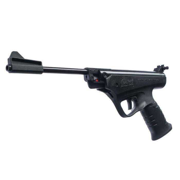 Самый массовый в России пневматический пистолет для тренировочной и развлекательной стрельбы. Прост и надёжен в эксплуатации. Конструкция классическая пружинно-поршневая, взведение боевой пружины осуществляется поворотом ствола в вертикальной плоскости. Предохранительные механизмы обеспечивают безопасность в обращении с пистолетом: исключен удар стволом при случайном срыве руки во время взведения; происходит блокировка от выстрела при неполностью запертом стволе. Эргономичная пластмассовая рукоятка позволяет одинаково комфортно стрелять как с правой, так и с левой руки. Спусковой механизм с регулировкой длины рабочего хода спускового крючка. Прицел с микрометрической регулировкой по горизонтали и вертикали, с изменяемой длиной прицельной линии.