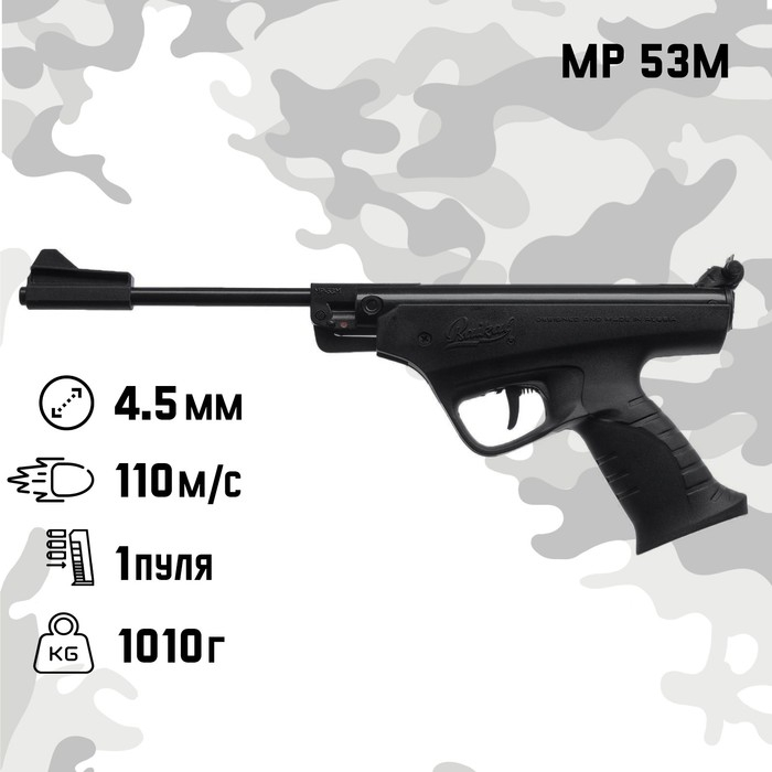 Пистолет пневматический "МР 53М" кал. 4.5 мм, 3 Дж, корп. металл, до 110 м/с