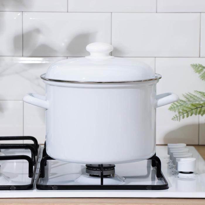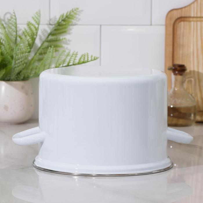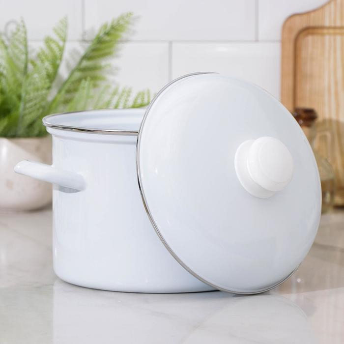 Кастрюля эмалированная без деколи, 4,5 л, эмалированная крышка, индукция, цвет белый