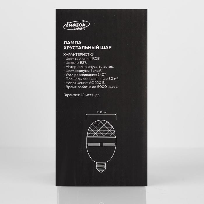 Световой прибор «Хрустальный шар» 8 см, Е27, свечение RGB