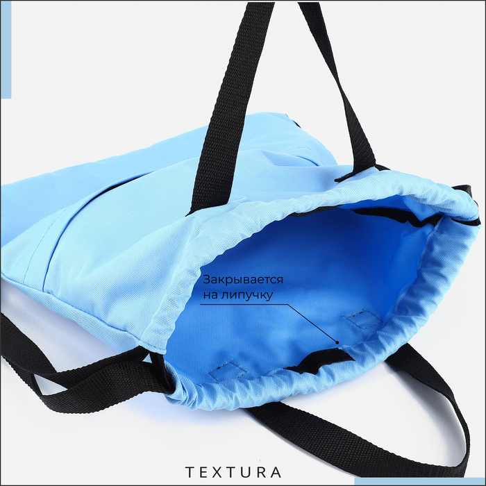 Мешок для обуви на стяжке, наружный карман, TEXTURA, цвет голубой