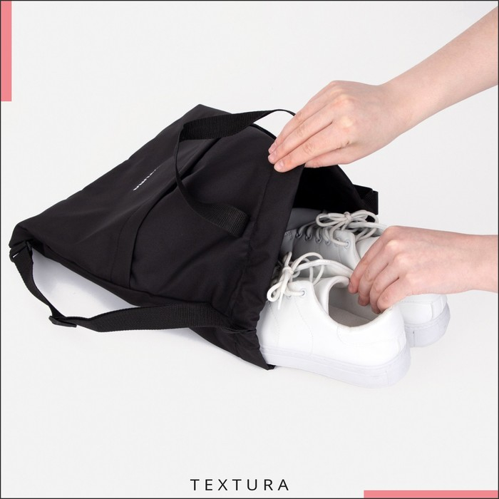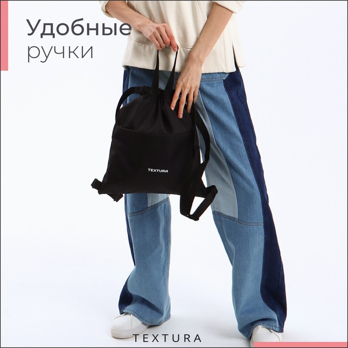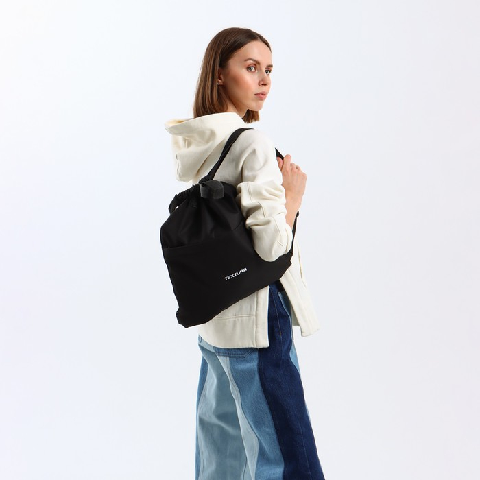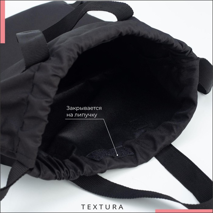 Мешок для обуви на стяжке, наружный карман, TEXTURA, цвет чёрный