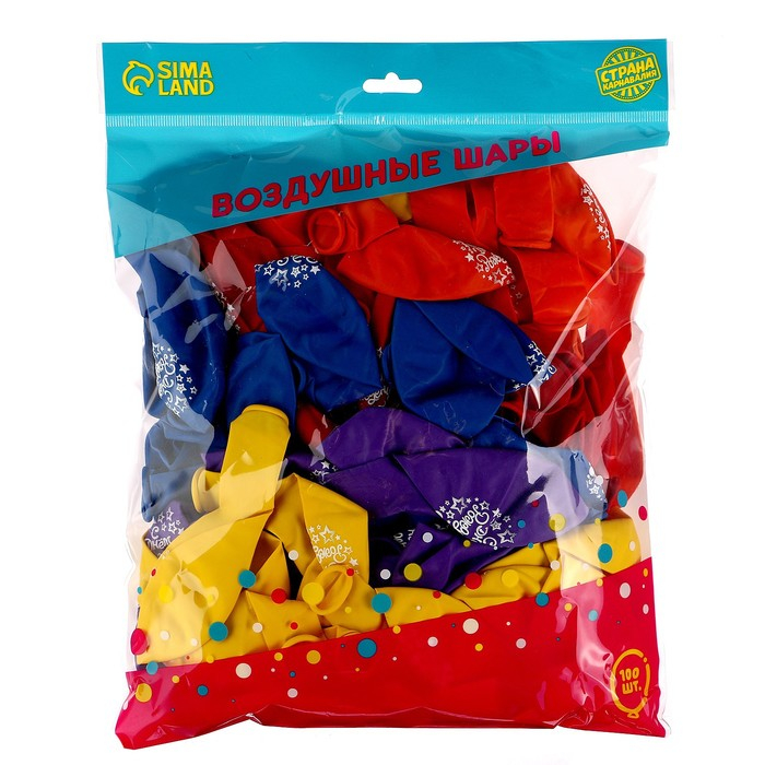 Воздушный шар латексный 12" "С Днем Рождения" Диско, 100 шт.
