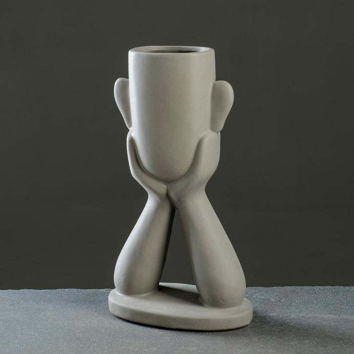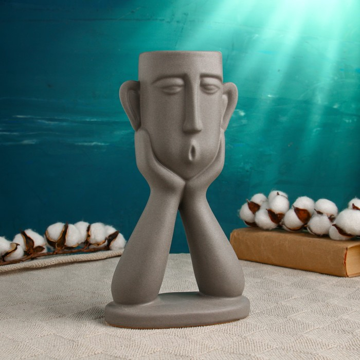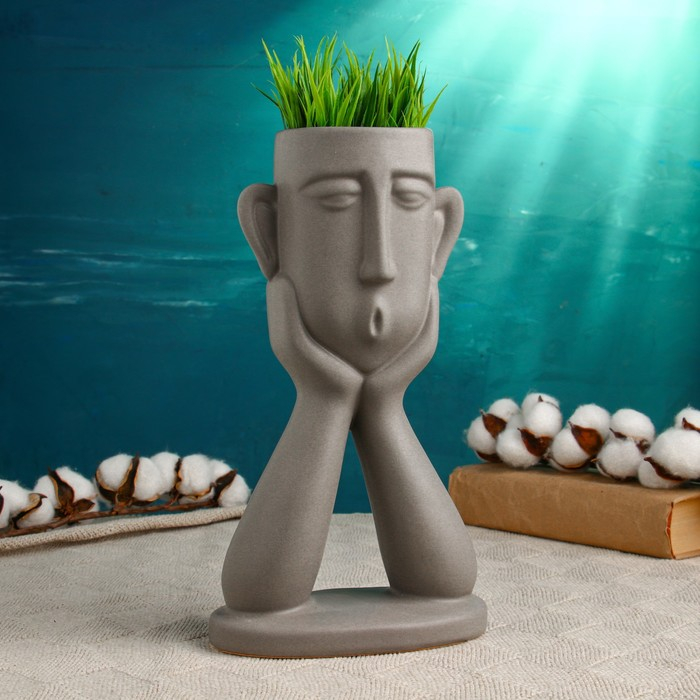 Кашпо "Голова юноши" серое, 27см