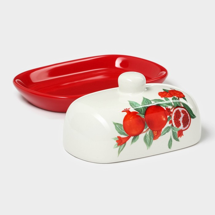 Маслёнка Доляна «Гранат», 17,2×12,4×8,5 см, цвет красный и белый