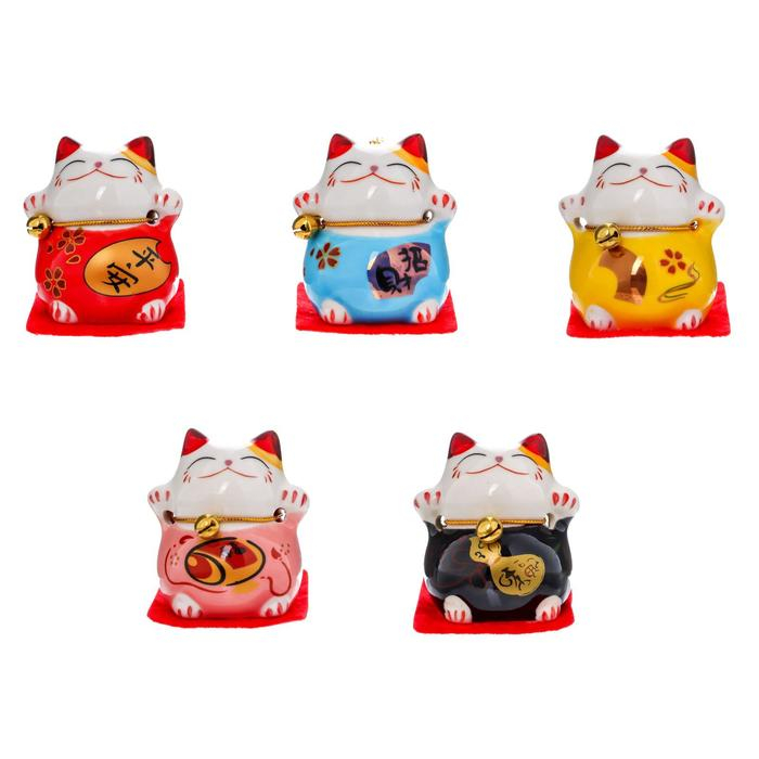 Сувенир кот керамика "Манэки-нэко" h=4,5 см (набор 5 шт)