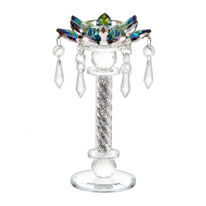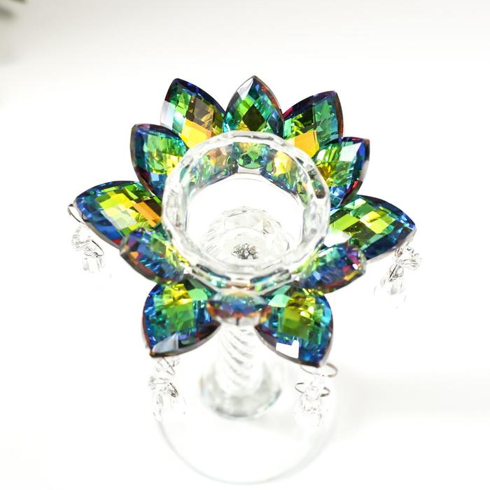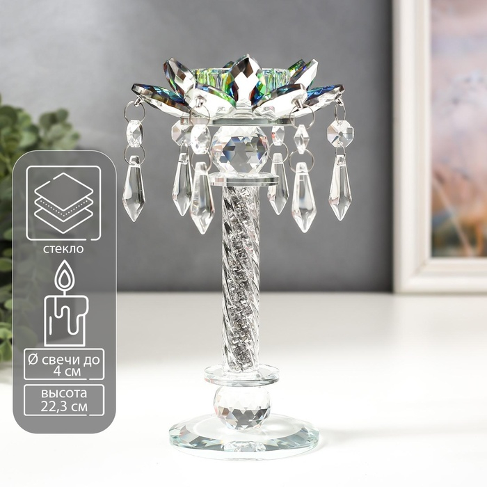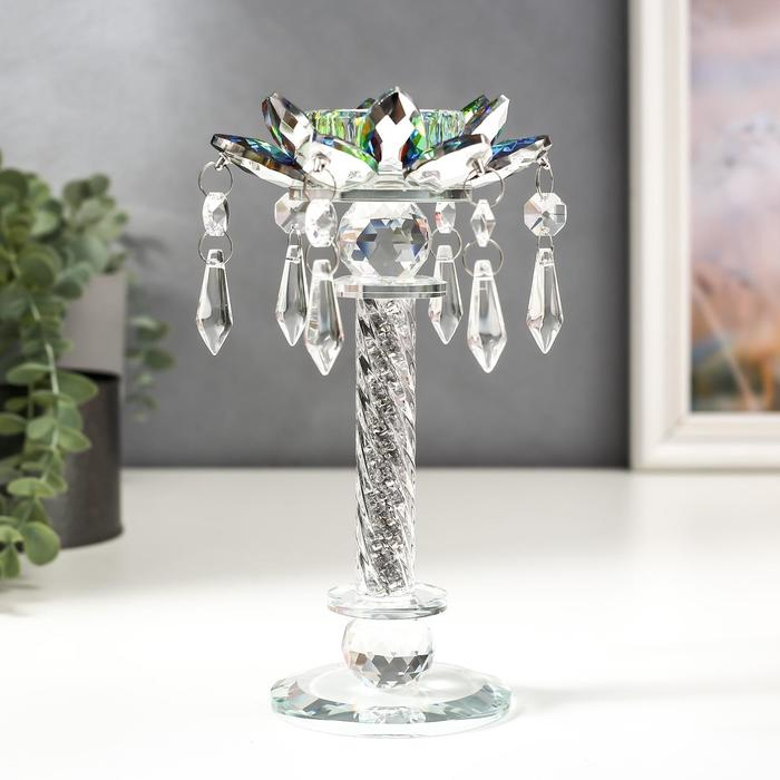 Подсвечник стекло на 1 свечу "Лотос на пьедестале" зелень голография 22,3х10,5х10,5 см