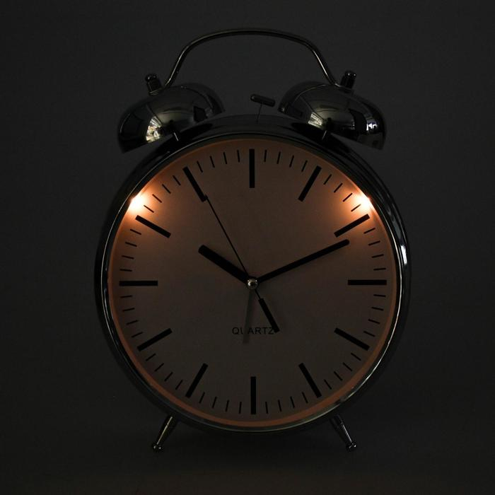 Часы - будильник настольные "Классика", с подвесом, дискретный ход, d-20 см, 32 х 23 см, 2АА