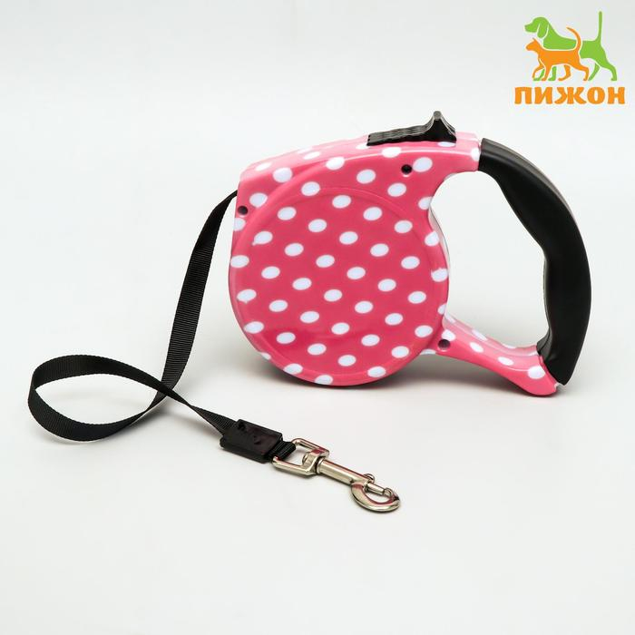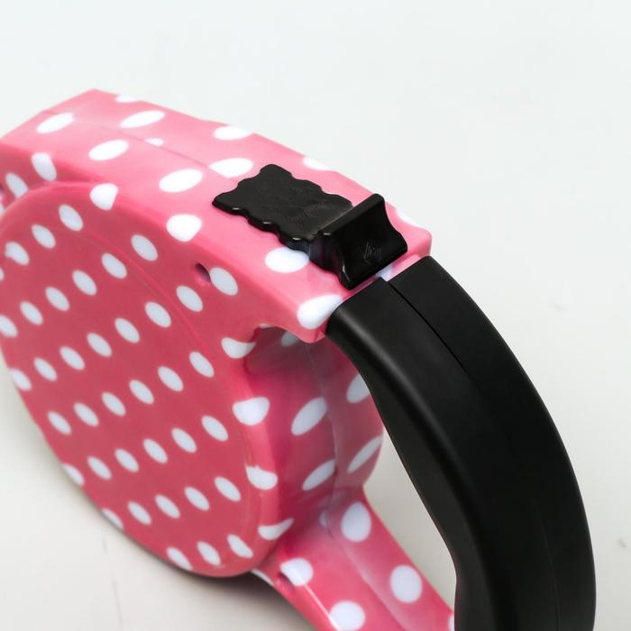 Рулетка с поводком-лентой, резиновая ручка, 5 м, вес животного до 15 кг, розовая в горошек
